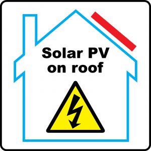 Solar PV on Roof Warning Stickers – 10cm x 10cm – Packs 1 to 1000 Labels